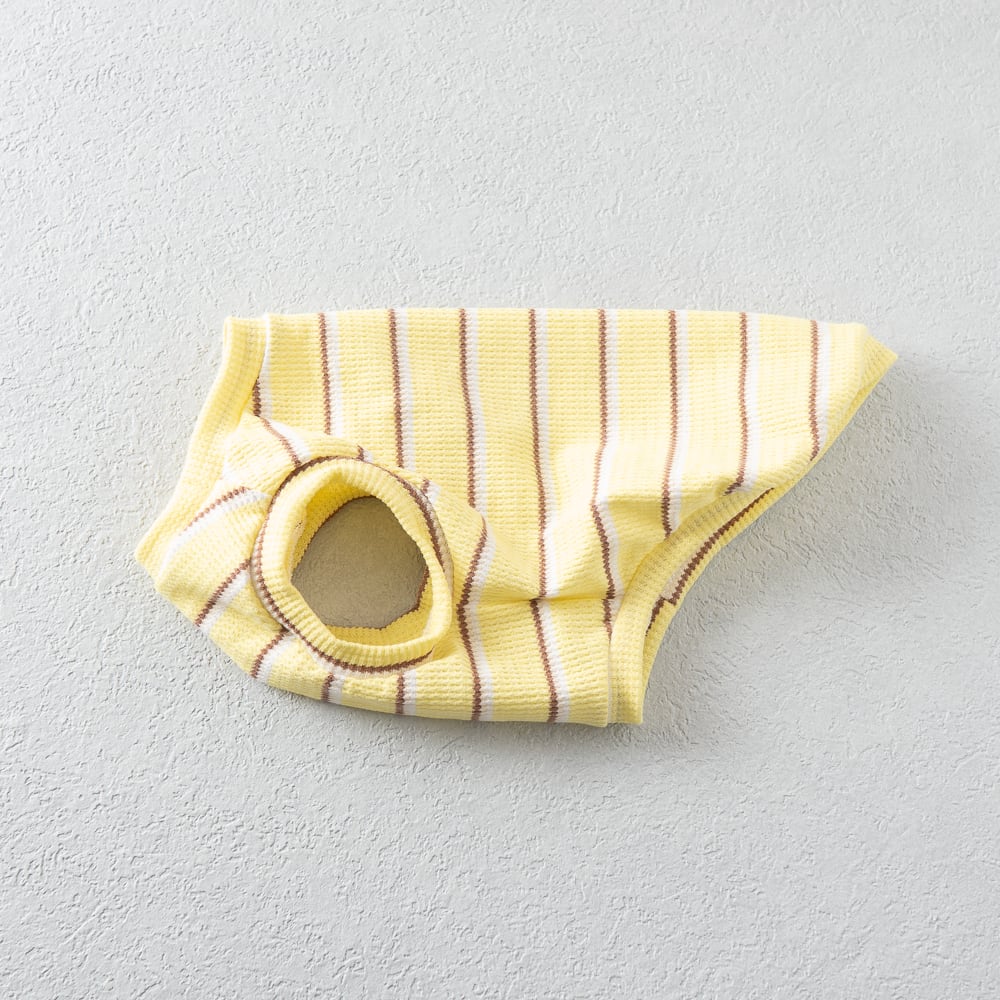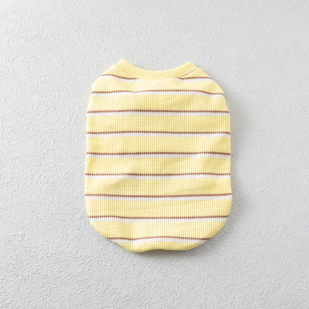 やさしいレモンカラーに細かなボーダーを重ね、