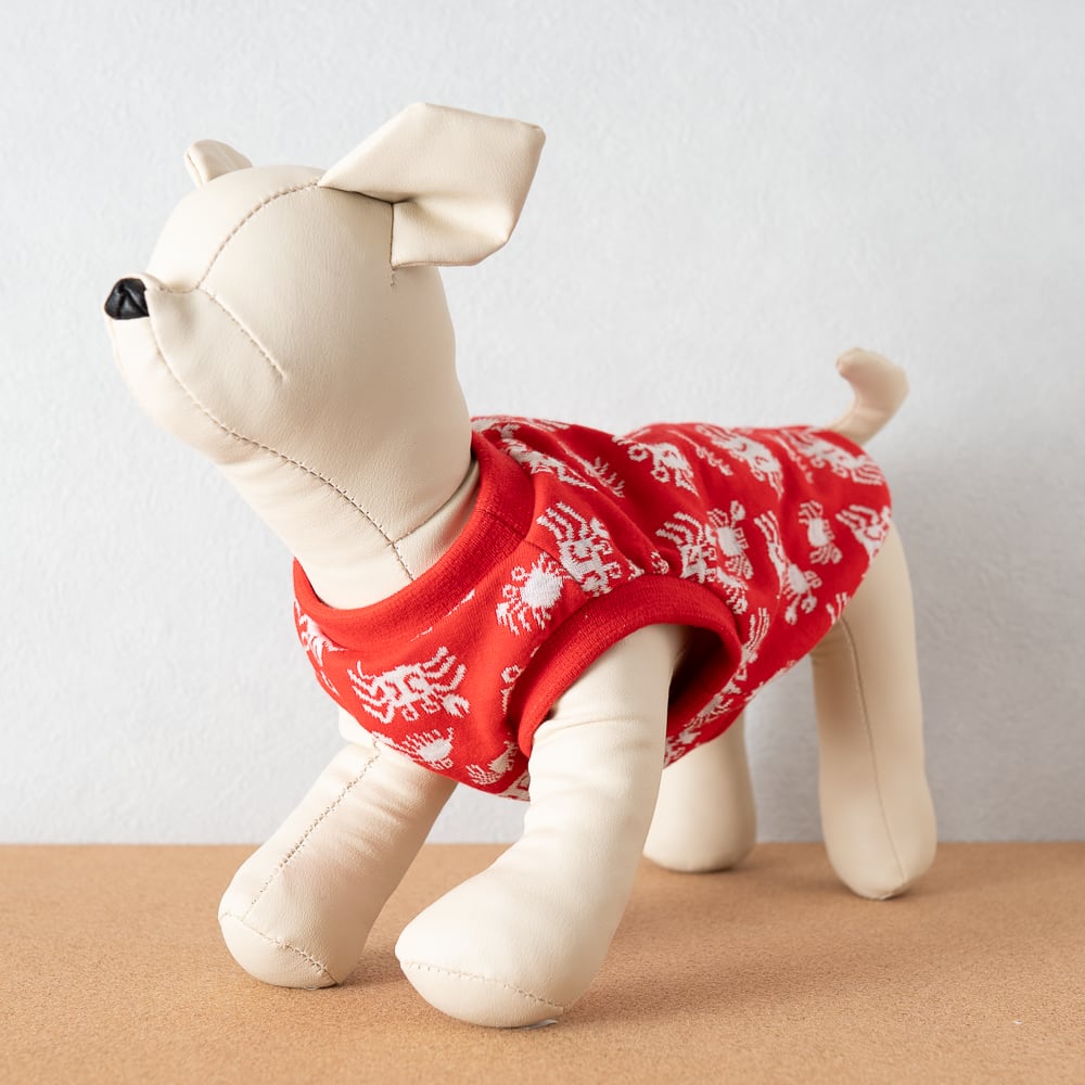犬服 カニさん柄 ジャガードニット タンクトップ 赤|やわらか伸縮 小型犬 中型犬 ダックス対応