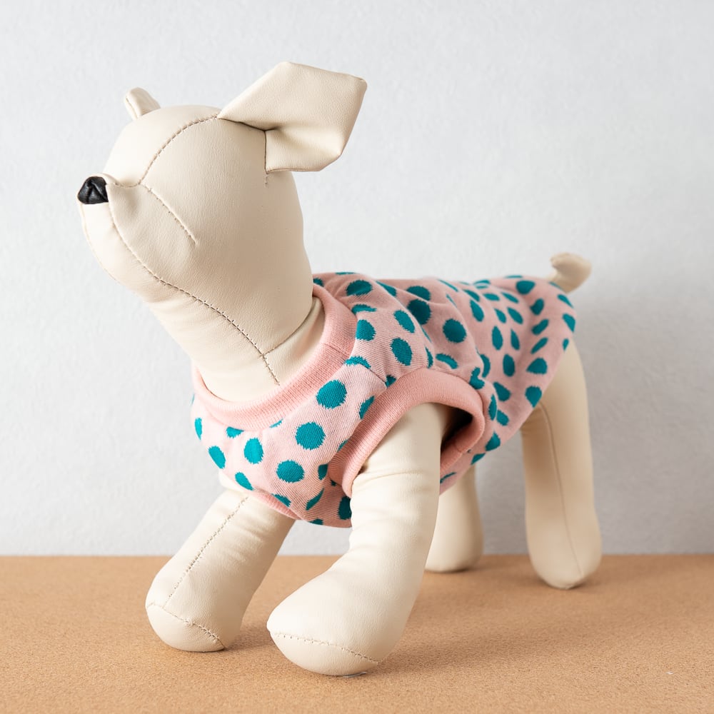 ドット柄 ニットタンク(ピンク×ピーコック)|犬服 小型犬〜中型犬|綿100%・やわらか・伸縮性あり