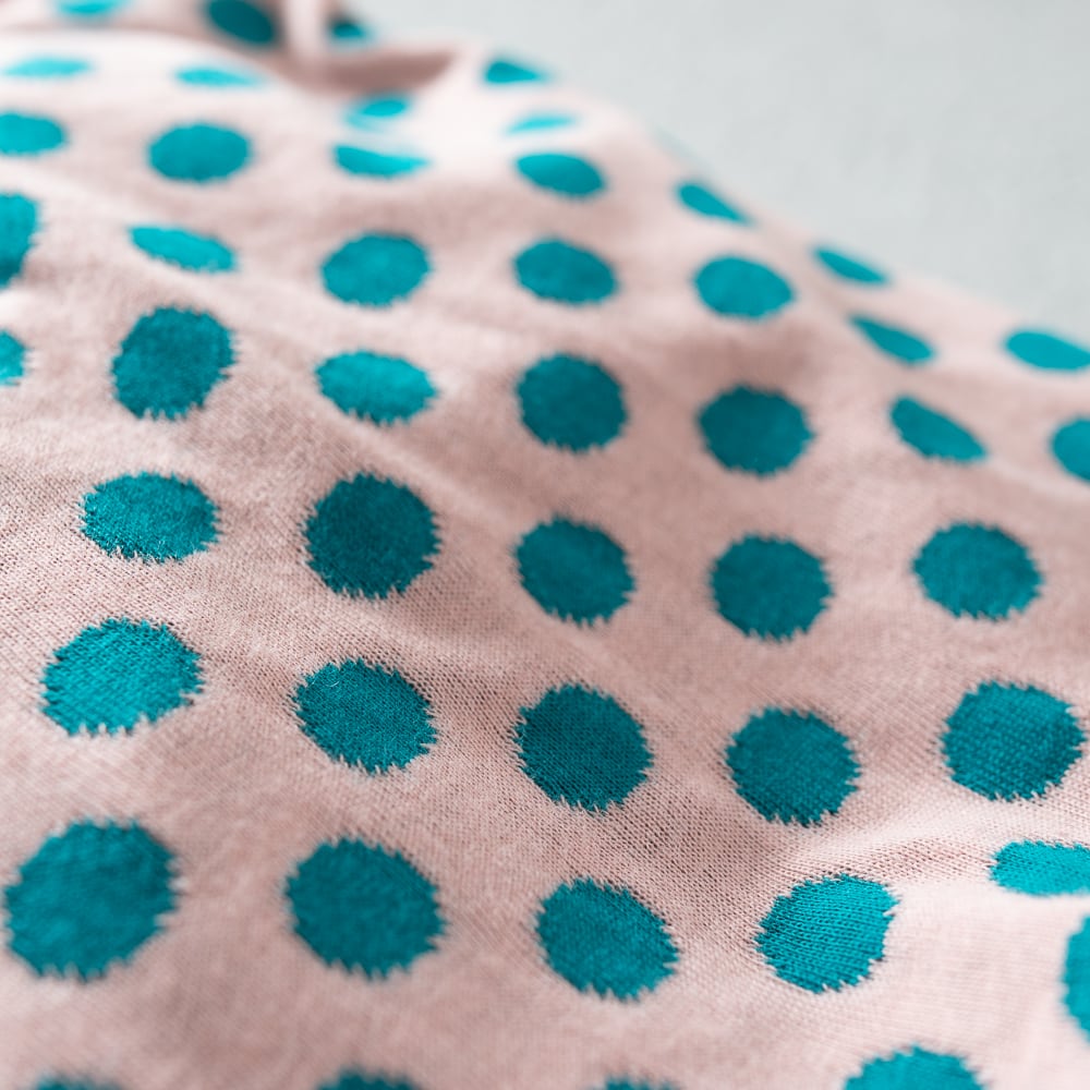 やさしいピンクに、ピーコックのドットが映える1枚♪