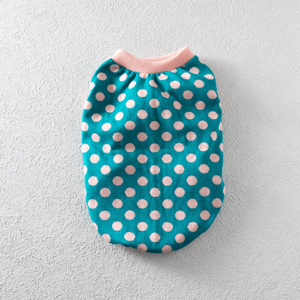 ドット柄 ニットタンク(ピーコック×ピンク)|小型犬〜中型犬|綿100%・やわらかニット・伸縮性あり