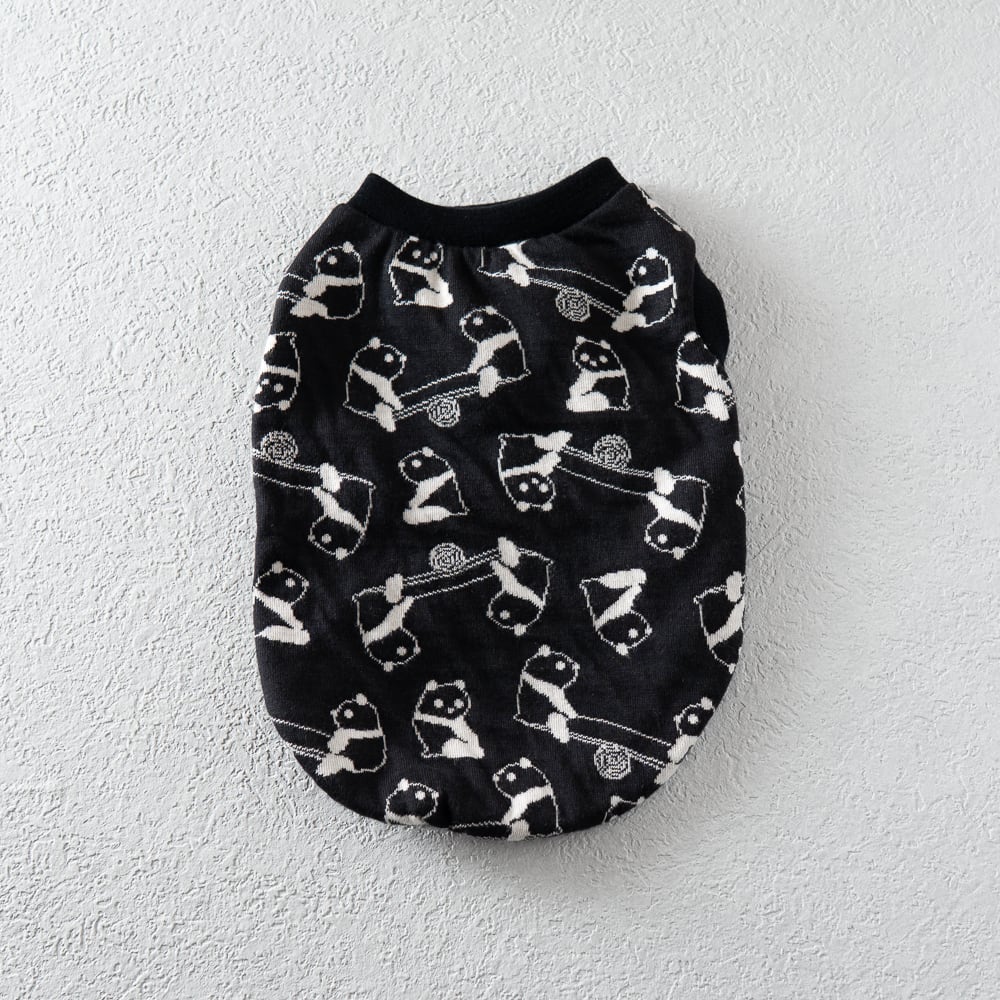 パンダ柄 ニットタンク(ブラック)|やわらか・伸縮性◎・デイリー使いに