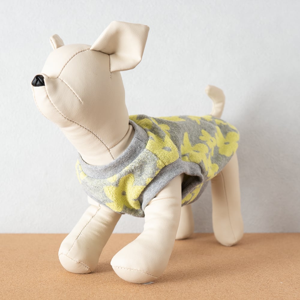 ポップフラワー パイルジャガードニットタンク(グレー×レモン)|やわらか・吸水性◎・デイリー使いに