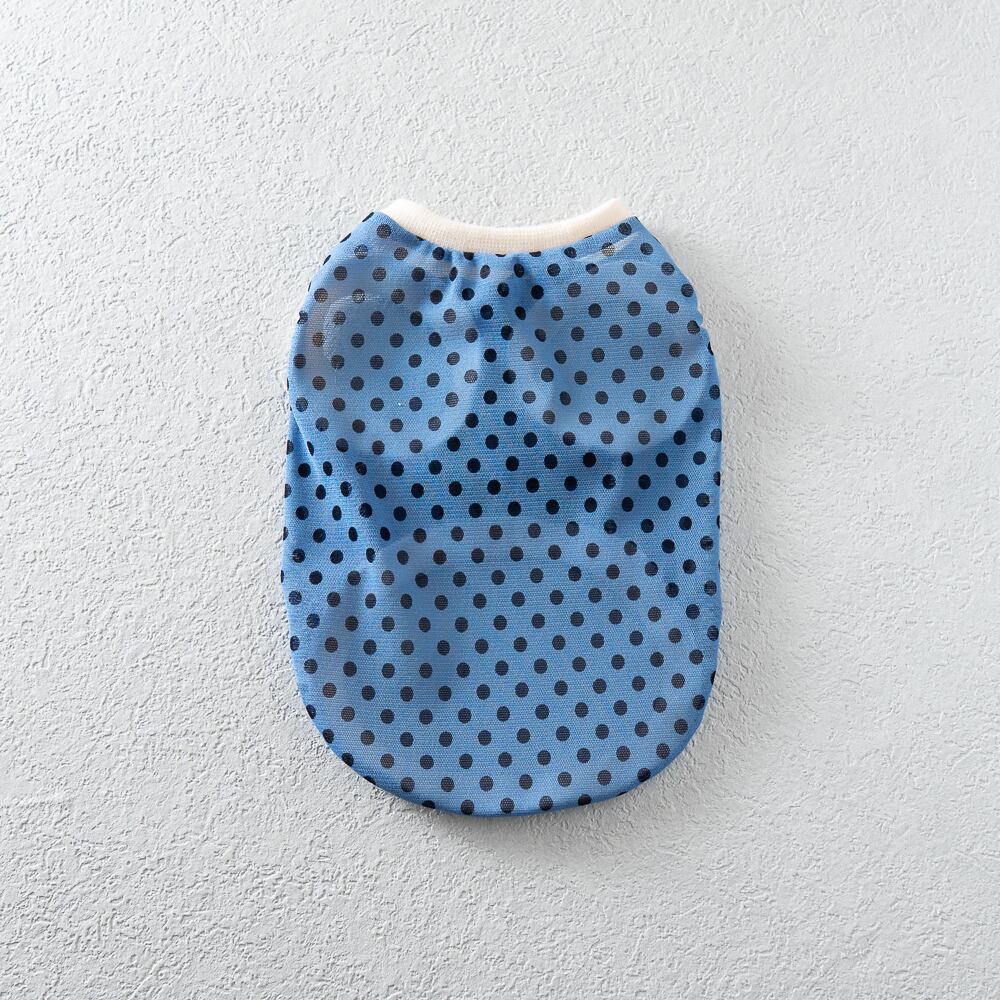 レトロドット 透け感タンク(ブルー)|軽量・通気性◎ 春夏向けメッシュ犬服 すけすけシリーズ
