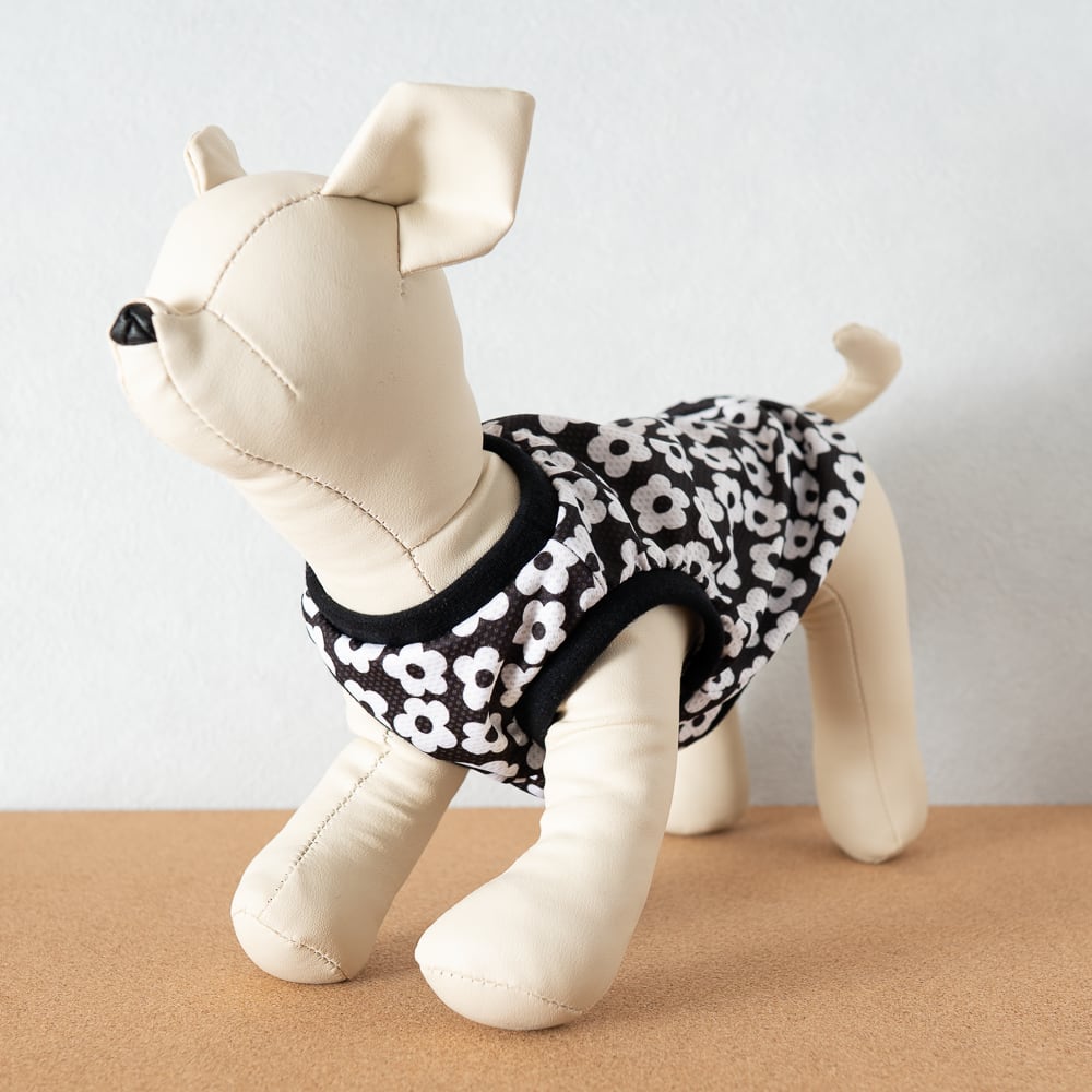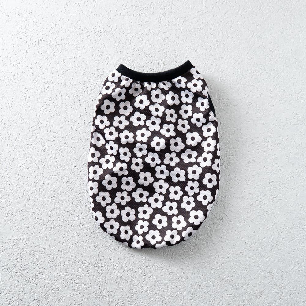 モノトーンフラワー ひんやり冷感タンク|UVカット約90%・濡らしてさらに涼しい犬服