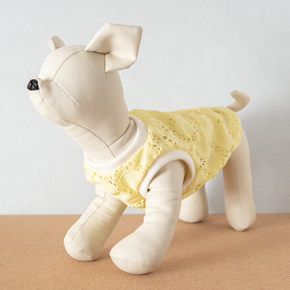 ぽこぽこレースタンク(レモン)|軽やか・通気性◎ 春夏向けレース犬服