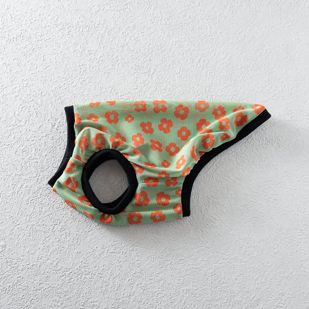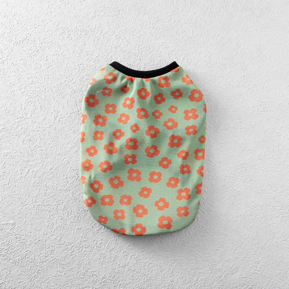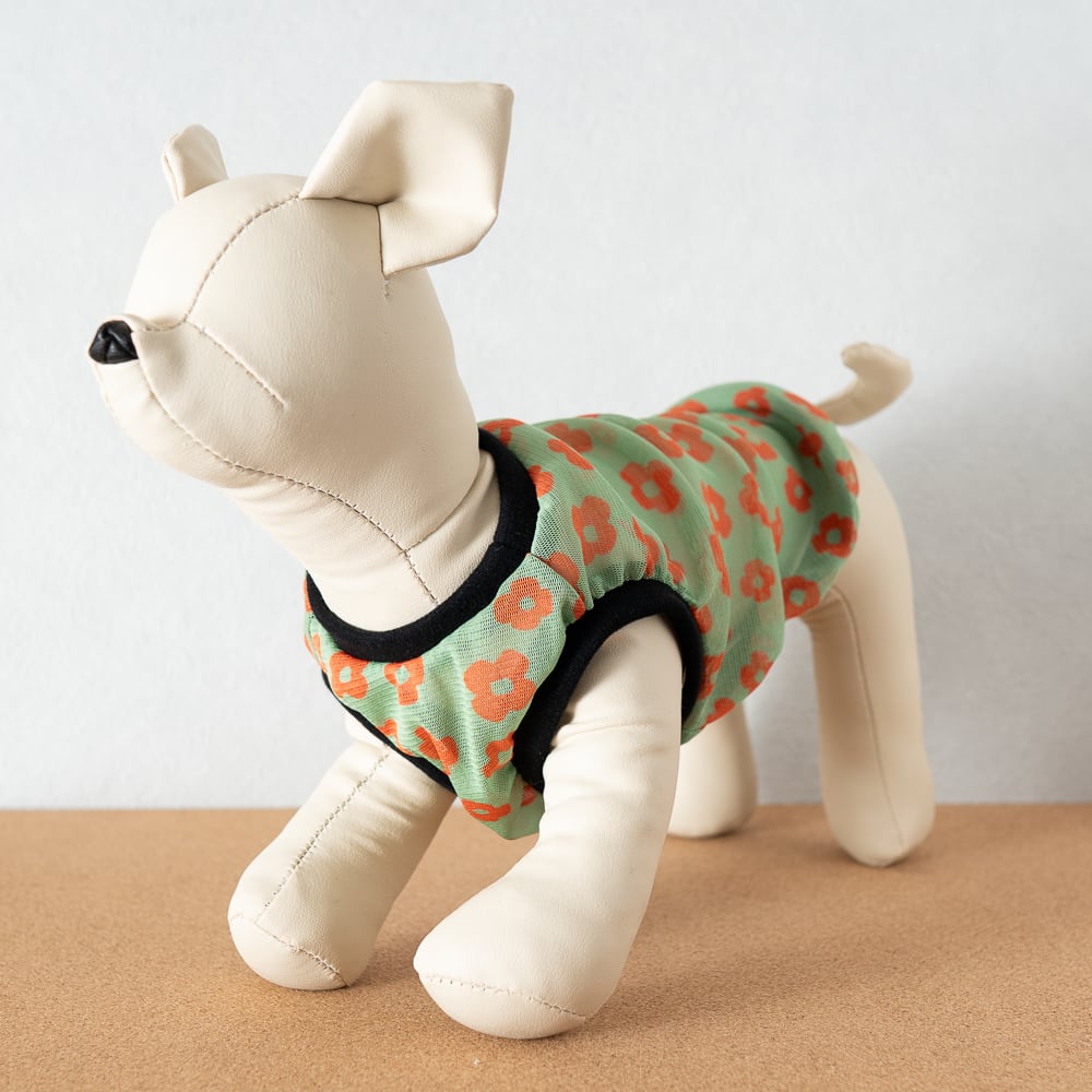 レトロフラワー透け感タンク 犬服|軽やか・通気性◎ 春夏向けメッシュ犬服