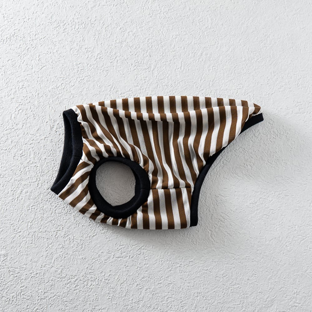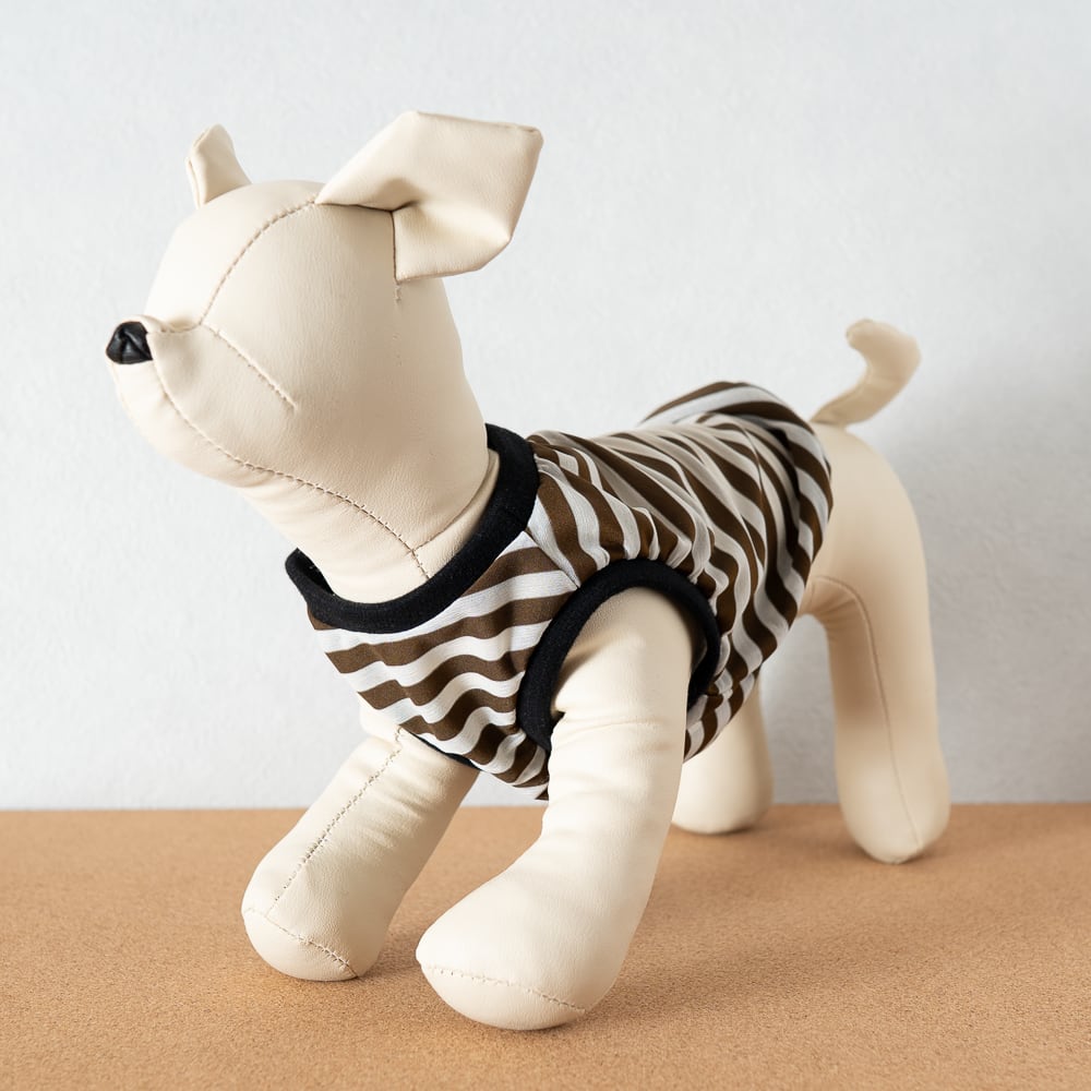 すけすけボーダータンク(ブラウン)|メッシュ犬服・軽量・通気性◎ 春夏向け