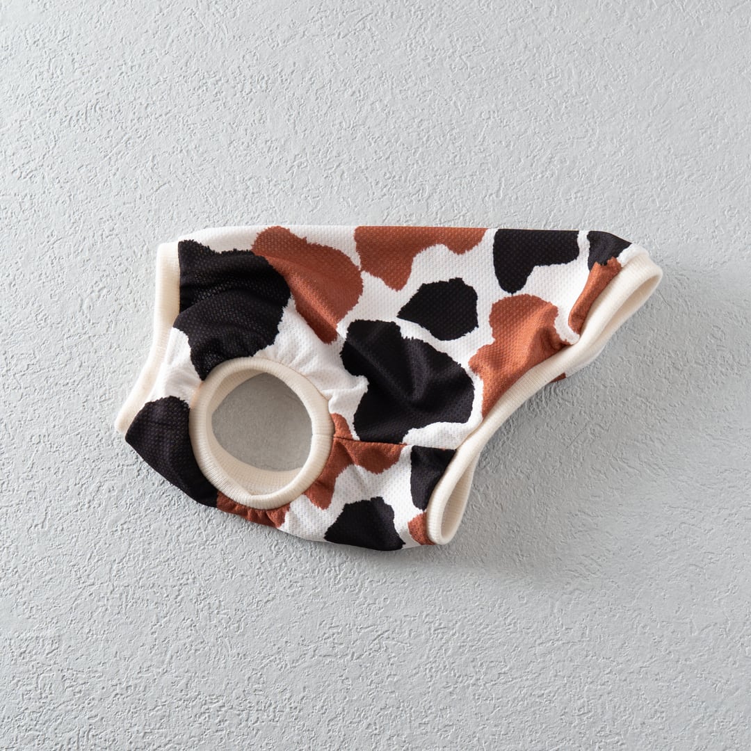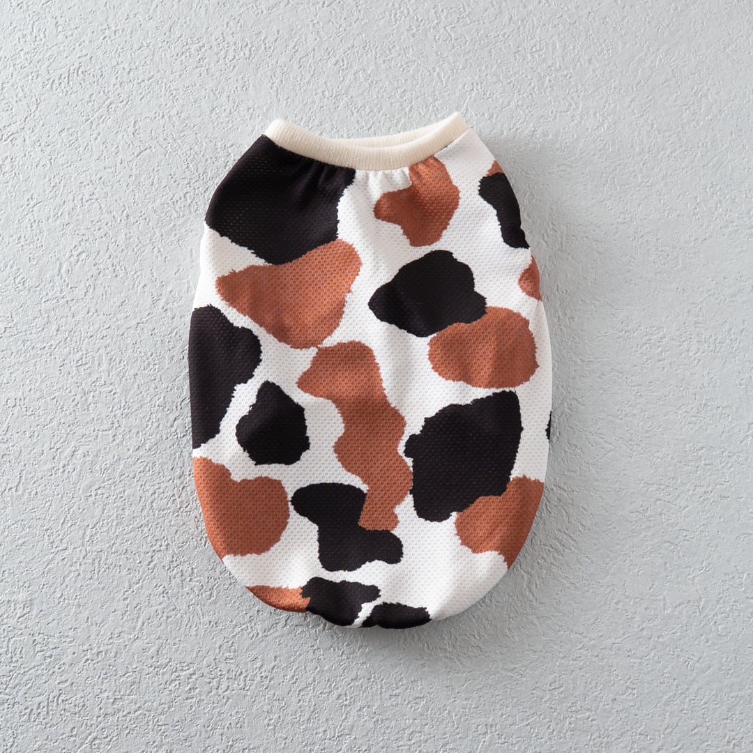 モーモー柄 冷感メッシュタンク|ひんやり涼しい個性派犬服(ブラウン×ブラック)